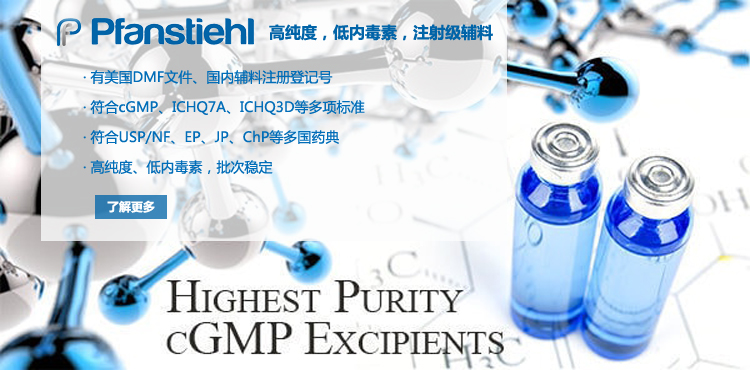 “熱烈祝賀Pfanstiehl的注射級甘氨酸Glycine(G-140)喜獲CDE登記號F20250000403, 這是Pfanstiehl產品獲得的第18個CDE登記號!”甘氨酸在醫藥輔料制劑中應用廣泛,, 可作為緩沖劑,增溶劑,穩定劑等,具有諸多優勢。Pfanstiehl秉承一貫高品質理念,為滿足全球生物制藥行業對于高品質甘氨酸的需求,隆重推出的注射級甘氨酸Glycine (G-140), 具有超高純度,超低內毒素,超低金屬殘留的特點,單獨檢測29種金屬離子,并且新增DNA,RNA,DNA酶,RNA酶和脂肪酶,亞硝酸鹽等多項質量指標的檢測,符合多國藥典規定(USP, EP, BP, JPE, ChP),可用于生物治療性藥物和疫苗的生產。產品信息:· 產品名稱:Glycine, High Purity, Low Endotoxin, Low Metals, USP, EP, BP, JPE, ChP (G-140)· 中文名稱:甘氨酸· 分子式:C2H5NO2· 分子量:75.07 g / mol· CAS號:56-40-6· 產品貨號:G-140產品特點: · 超高純度,超低內毒素,超低微生物含量,超低金屬雜質殘留· 質量指標新增DNA,RNA,DNA酶,RNA酶,脂肪酶和亞硝酸鹽檢測· 符合多國藥典:USP, EP, BP, JPE, ChP· 符合ICH Q3D標準· 符合GMP標準· 已獲DMF和CDE登記號 產品應用:· 緩沖劑· 穩定劑· 增溶劑如果您對Pfanstiehl注射級別Glycine G-140感興趣,歡迎聯系Pfanstiehl 中國區代理商北京西美杰科技有限公司獲得如下詳細的產品概況說明文件和測試樣品。Pfanstiehl Inc.最新產品系列如下,歡迎聯系北京西美杰科技有限公司獲取100g裝免費樣品。北京西美杰科技有限公司為Pfanstiehl中國代理,為客戶提供完善的技術支持與售后服務。歡迎撥打西美杰客服電話400-050-4006或者登陸網站www_xmjsci_com.jinlvguo.com了解更多信息。 更多>
